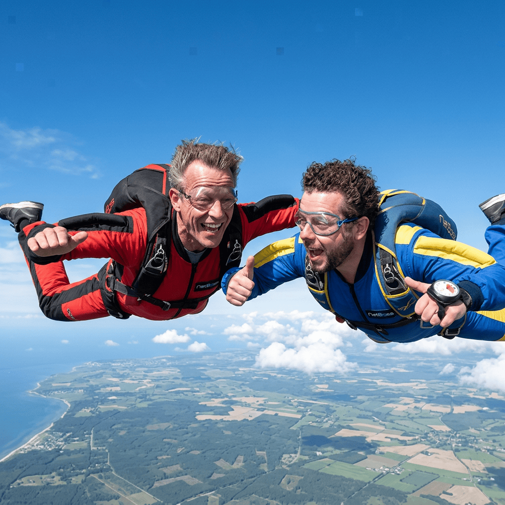 Na lunch en theorie gaan we het letterlijk uitvoeren. We gaan (indoor) Skydiven.